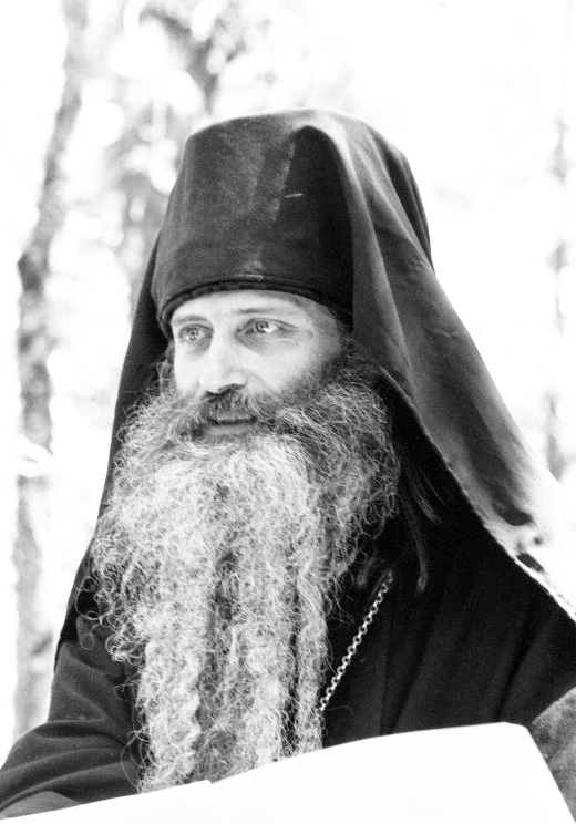 И тут предо мной появился священник, одетый в черное, с длинной всклокоченной бородой и сияющим лицом. Я почувствовал, что ткань, которую я только что использовал как платок, принадлежала ему. Он сказал, что его зовут Серафим (Роуз).